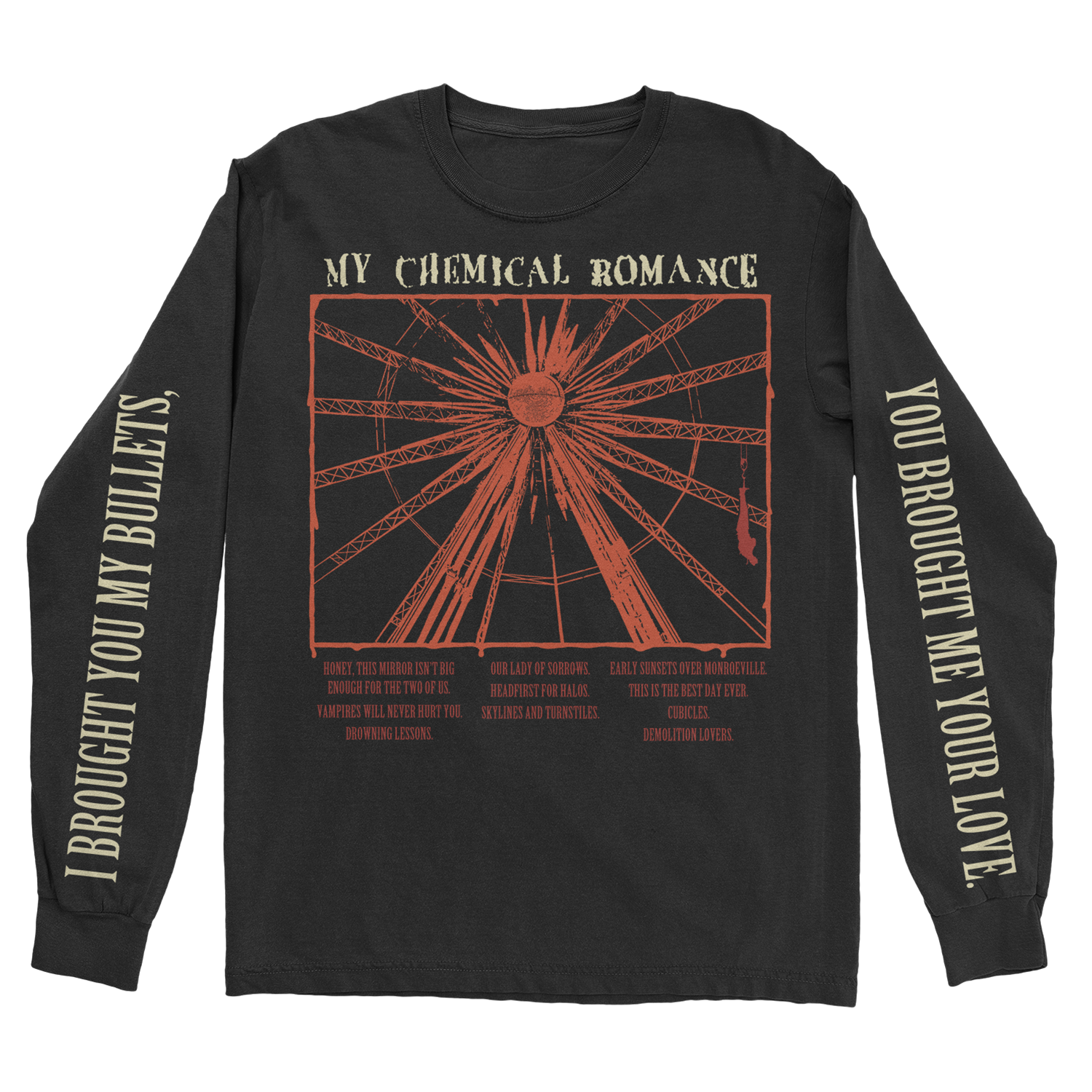 A limited release design celebrating the original release of I Brought You My Bullets… twenty years ago. Printed on a 100% cotton black long sleeve t-shirt.