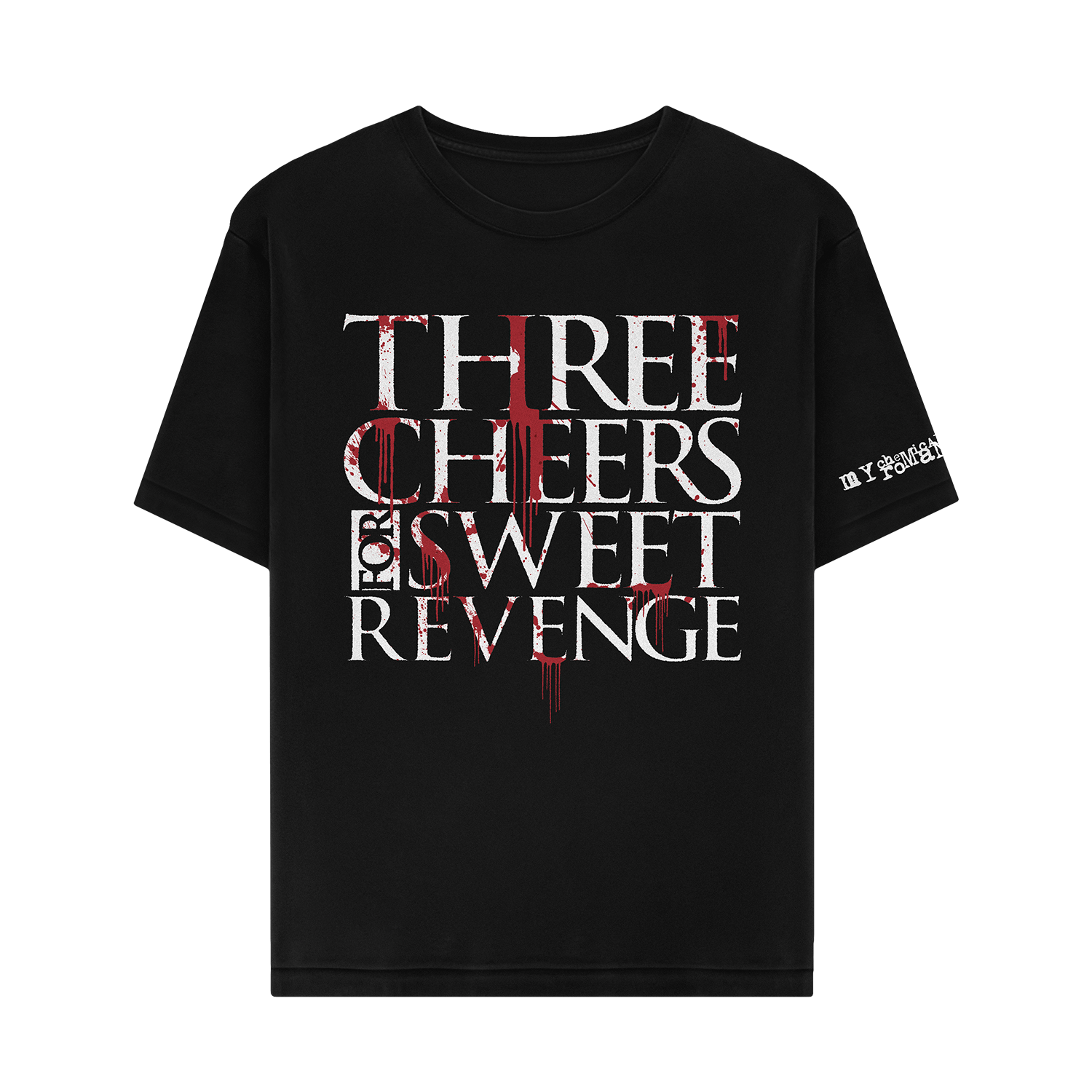 A classic MCR Three Cheers era design, printed on a black unisex 100% cotton t-shirt.