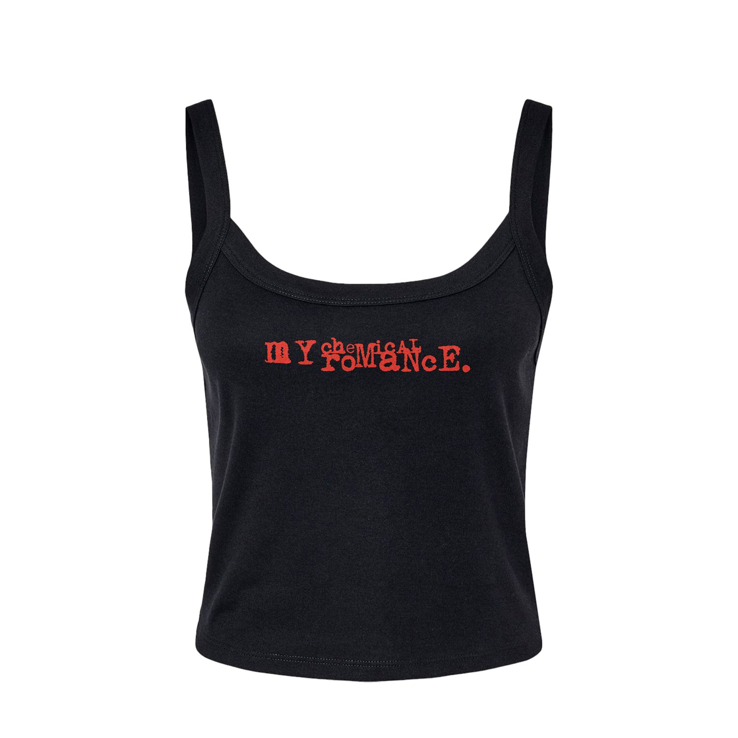 The classic Three Cheers era logo, printed on a black women's ribbed tank top.